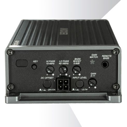 The amplifier also features FIT 2+™ (Fail-safe Integration Technology 2 PLUS) – which provides nearly universal compatibility with stock or aftermarket radios. Another industry first, the KEY500.1 is uniquely suited to accept factory input signals as high as 40 volts (400 watts). The KEY amplifier will work with almost every car on the road today, whether you have a factory or aftermarket audio system.