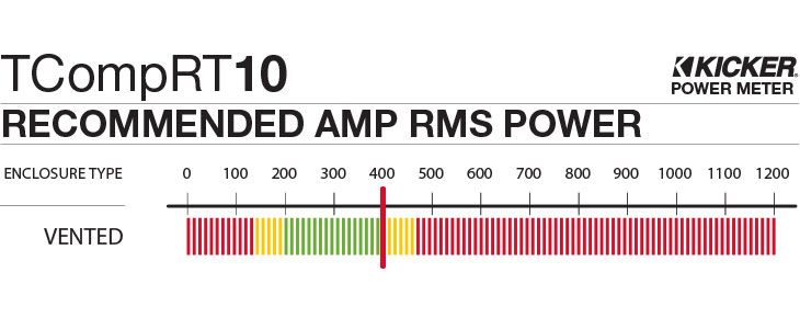 The CompRT 10 Inch Enclosure works best with 400 watts of recommended power. See below for more details.