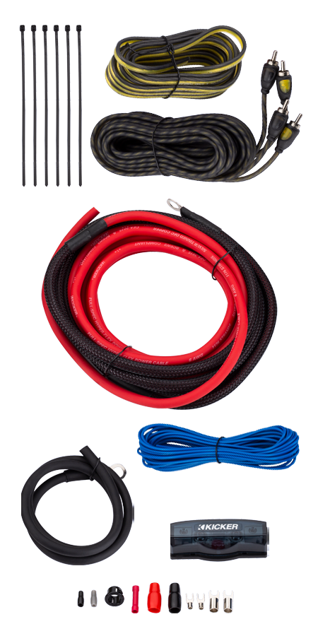 KICKER V-Series complete value amp kits feature top-quality Hyper-Flex™ power, ground and turn-on cables. K-Series speaker wire and dual-injected, 2-channel interconnects are also included, as is an MANL fuse holder and 60-amp MANL fuse. Insulated crimp connectors, grommet and zip ties come included as well. One additional year of amplifier warranty is included if purchased with a KICKER amp.